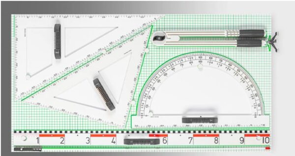 Σετ 5 πλαστικών οργάνων γεωμετρίας με δείκτη σε πλαστική πινακίδα