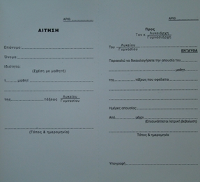 Μπλοκ Αιτήσεις Δικαιολόγησης Απουσιών 50 φ.